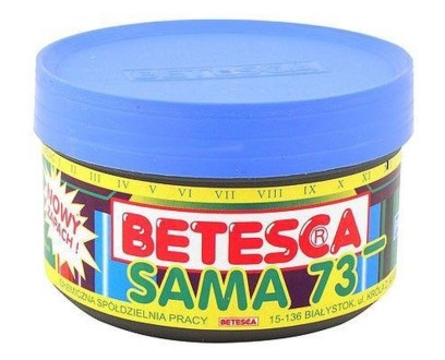 Pasta Sama 73 to produkt przeznaczony do usuwania uporczywych i długotrwałych śladów zabrudzeń z powierzchni ceramicznych, emaliowanych, szkliwionych, porcelanowych czy fajansowych. Działa na osady, spaleniznę, naloty rdzy oraz kamienia. Nie zaleca się stosowania do obszarów wykonanych z tworzyw chromowanych i sztucznych.