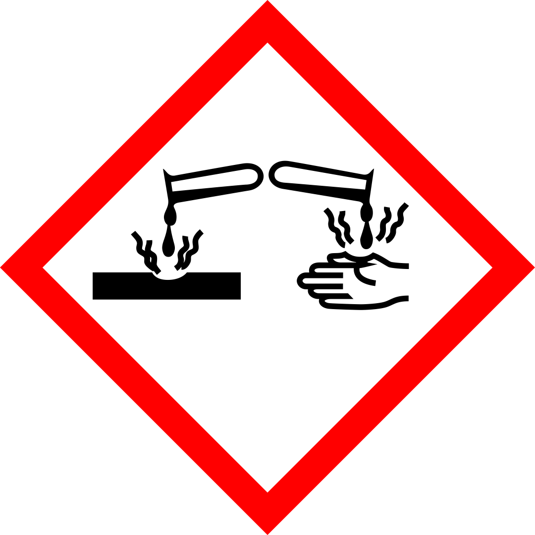 - Powoduje poważne oparzenia skóry oraz uszkodzenia oczu.