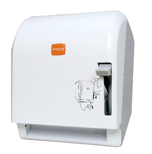 Dozownik - podajnik półautomatyczny łokciowy biały do ręczników papierowych w roli