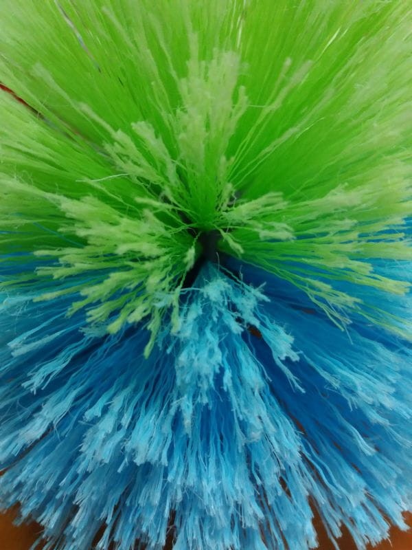 Miotła - kula do usuwania kurzu i pajęczyn wykonana z tworzywa sztucznego. Dzięki specjalnie postrzępionym końcówkom włosia doskonale przyciąga zalegające kłębki kurzu i pajęczyny.