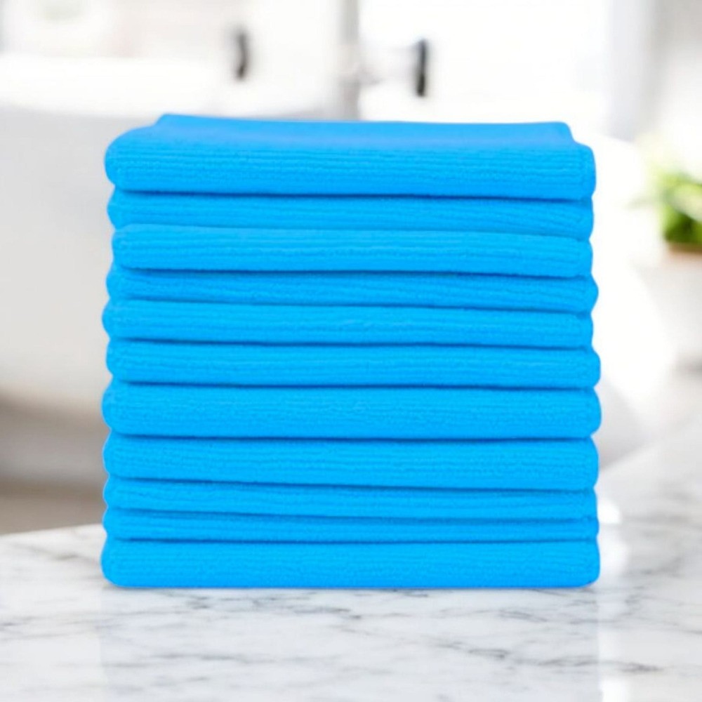Ścierki z mikrofibry niebieskie o bardzo dobrych właściwościach wchłaniania do stosowania na sucho i mokro. Nie wymagają stosowania środków chemicznych czy detergentów.