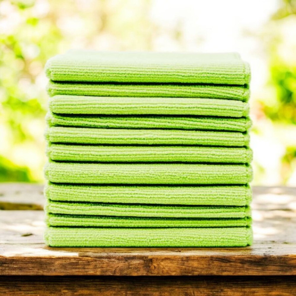 Ścierki mikrofibry zielone o bardzo dobrych właściwościach wchłaniania do stosowania na sucho i mokro. Nie wymagają stosowania środków chemicznych czy detergentów.