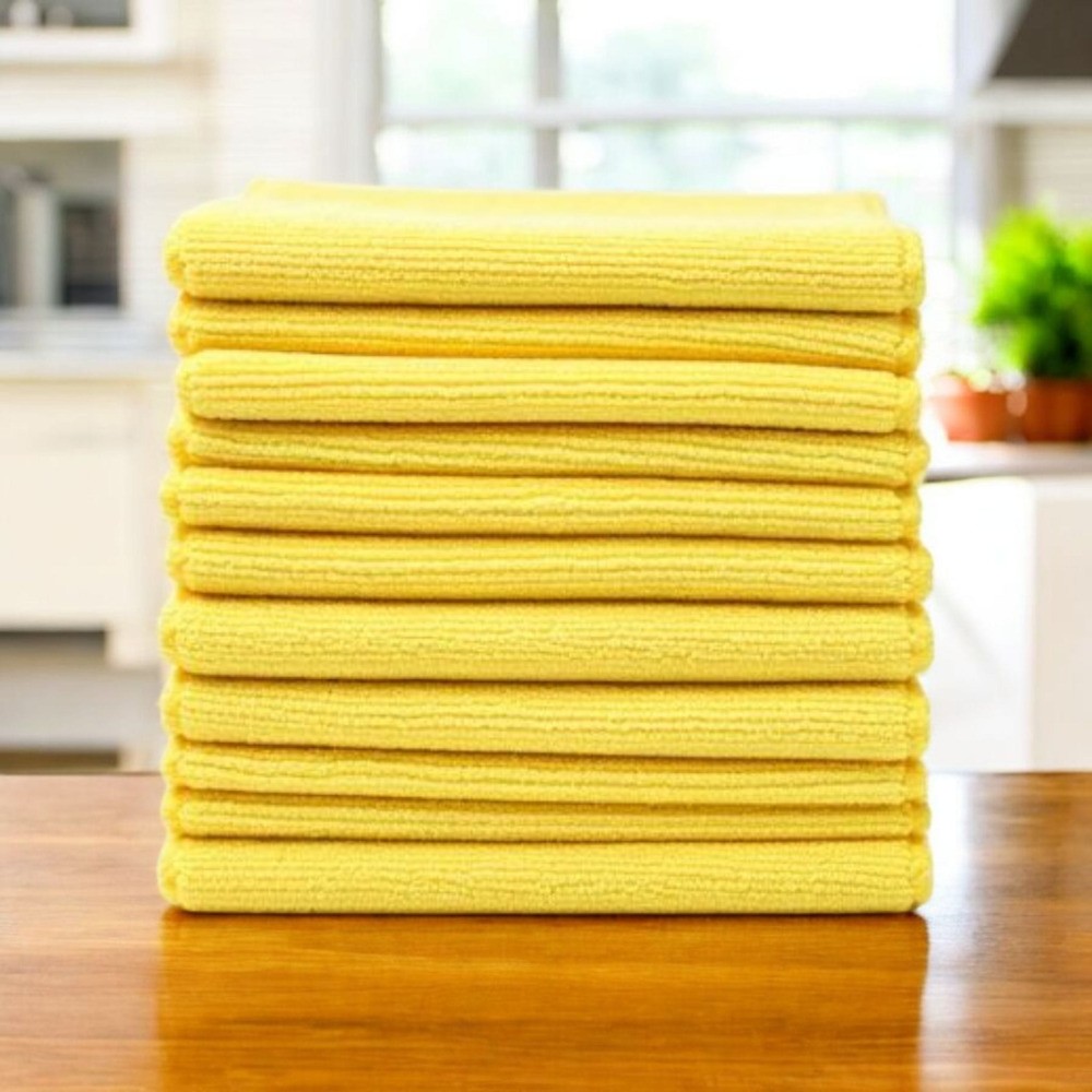 Ścierki z mikrofibry żółte o bardzo dobrych właściwościach wchłaniania do stosowania na sucho i mokro. Nie wymagają stosowania środków chemicznych czy detergentów.